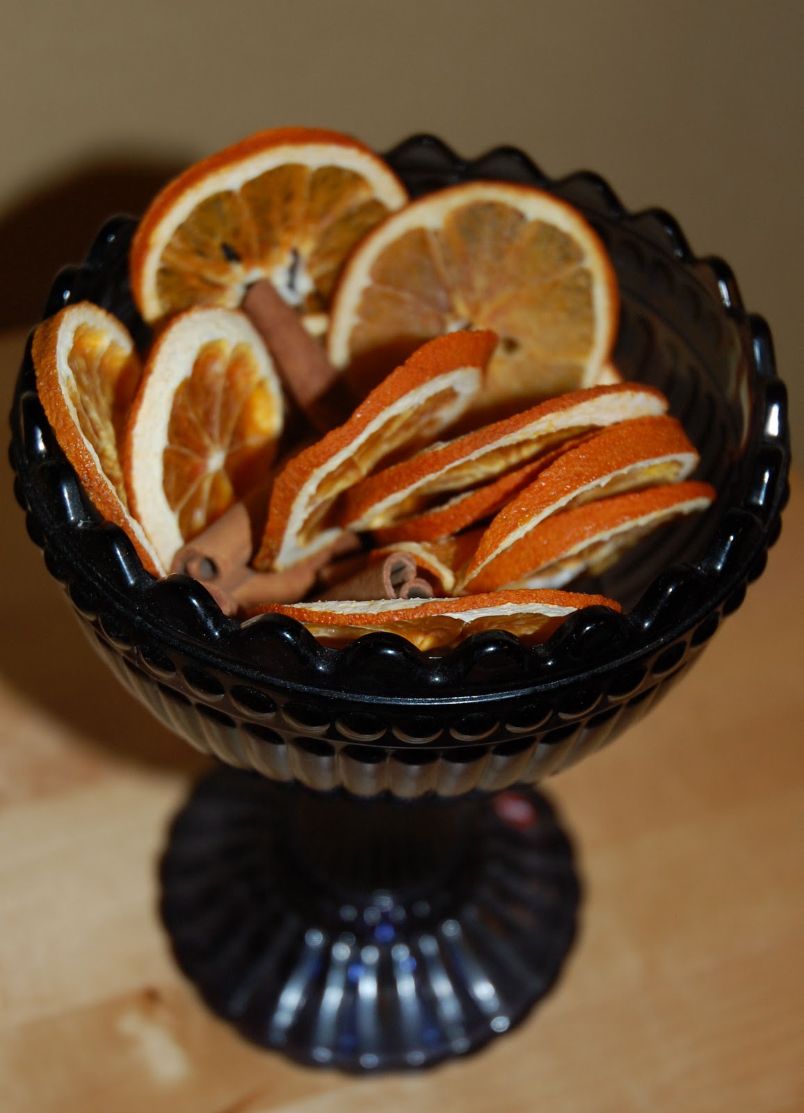 Som jag sagt innan är jul dofter. Har därför gjort en doftskål med torkade apelsiner (gjort dem enkelt på låg värme i ugnen) och kanelstänger.